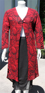 Mantel für kühle Sommerabende, Blättermuster in rot und schwarz.